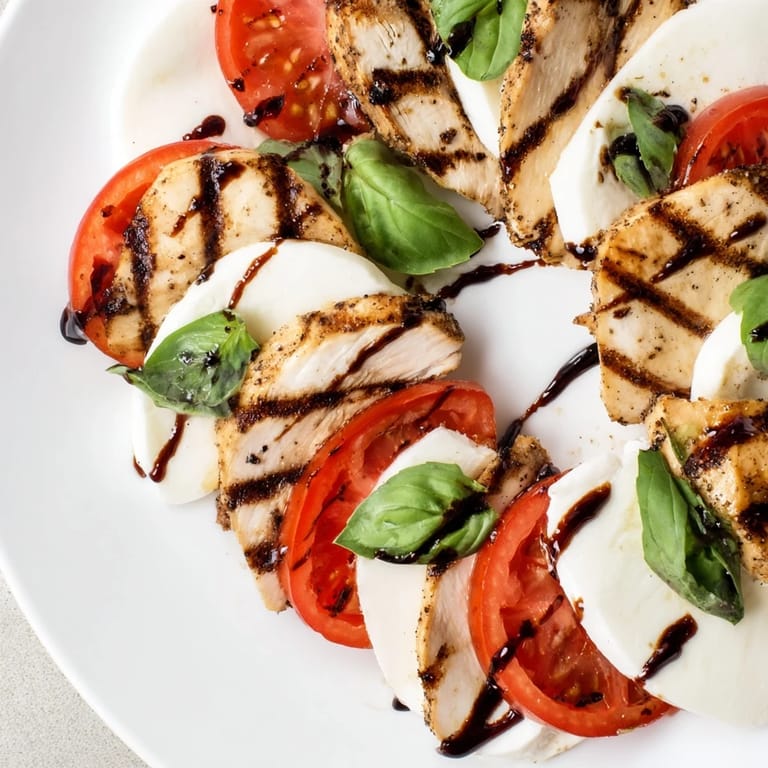 Save My neighbor Sofia handed me a container of homegrown tomatoes one August morning, the kind that smell like sunlight and earth before you even slice them. I had chicken thawing and a ball of mozzarella in the fridge, and suddenly this salad happened without a plan. The grill was already hot from breakfast, so I seasoned the chicken and let everything come together in that effortless way summer meals do. It tasted like the kind of lunch you eat slowly, standing at the counter, not wanting it to end.
