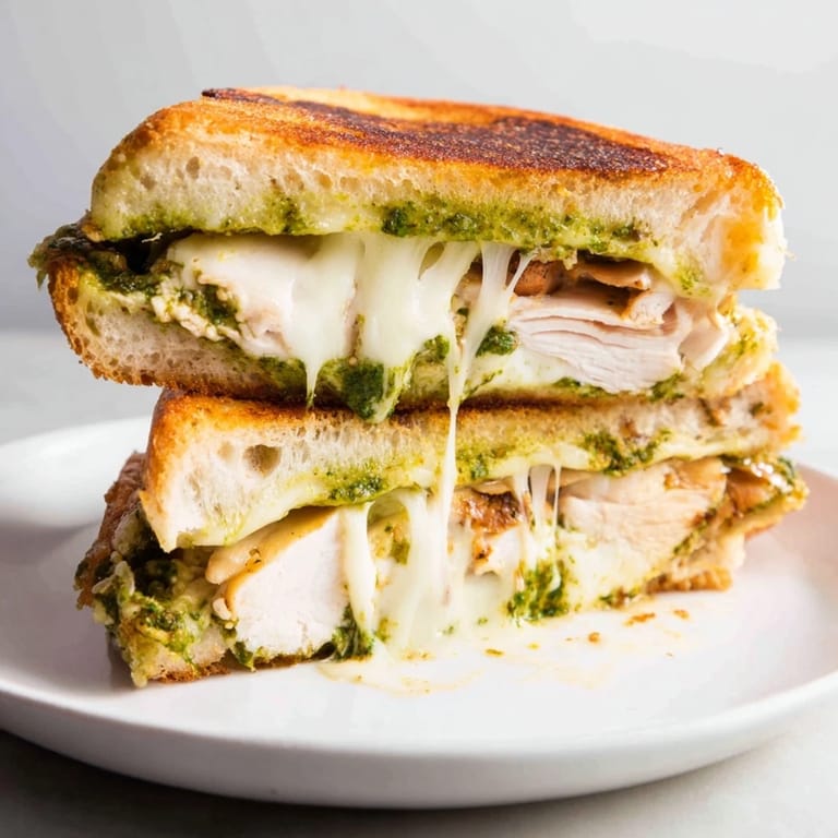 Save The smell of basil and toasted bread always brings me straight back to a tiny café in Florence where I watched the sandwich maker spread pesto with such confidence, like he'd done it ten thousand times. I came home determined to recreate that exact bite: the crunch, the melt, the herby punch that made everything else taste boring. After a few tries, I realized the secret wasn't fancy technique—it was just good ingredients pressed together until they couldn't help but become friends. Now this panini shows up in my kitchen whenever I need something that feels special but doesn't ask much of me. It's become my go-to for lazy Sundays and surprise lunch guests alike.
