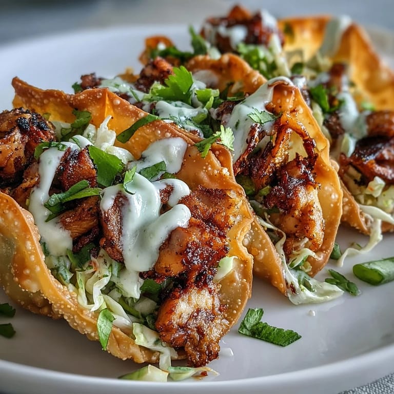 Save The smell of frying wonton wrappers always takes me straight back to a rainy Tuesday when I decided to stop playing it safe with dinner. I had chicken thighs marinating, a craving for crunch, and a stack of wonton wrappers I'd bought on impulse weeks earlier. Within minutes, those golden, blistered shells were cooling on my counter, and I knew I was onto something that would become a regular rotation. These tacos are what happens when you let curiosity win in the kitchen.
