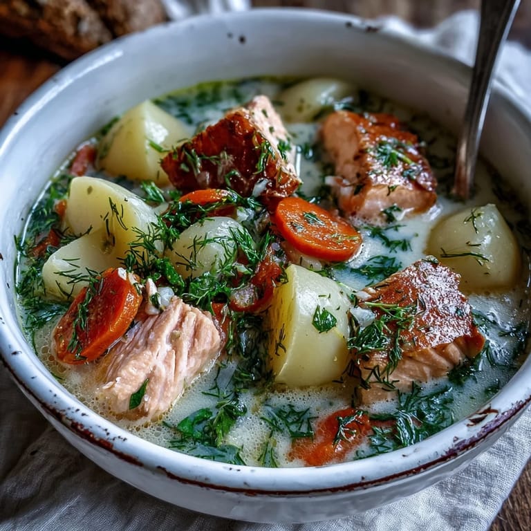 I remember my first attempt at home where I overcooked the salmon until it was tough, which was a mistake I never made again. I learned to watch for that perfect moment when the pink turns just opaque. Standing over the pot the smell of fresh dill always reminds me of summer gardens even in the dead of winter. It is a dish that invites you to slow down and actually taste your food. My family now asks for it every time the first frost hits the grass.