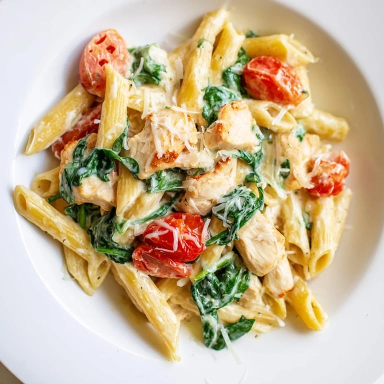 I served this to my neighbor who swore off creamy pastas after her doctor mentioned cholesterol, and she looked genuinely relieved when I told her what was in the sauce. She had seconds and texted me the next morning asking for the recipe, which is how I knew it was a keeper. There is something quietly satisfying about feeding someone food they thought they couldn't enjoy anymore. The spinach wilts into the sauce in a way that makes it disappear for picky eaters, and the cherry tomatoes burst just enough to add little pockets of sweetness.