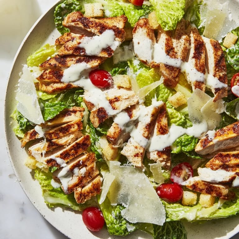 Sometimes I swap in grilled shrimp when we want something different but still crave those Caesar flavors. The sweetness of shrimp plays unexpectedly well with the sharp dressing. During summer, I'll throw halved peaches on the grill alongside the chicken for juicy bursts that make the salad sing.